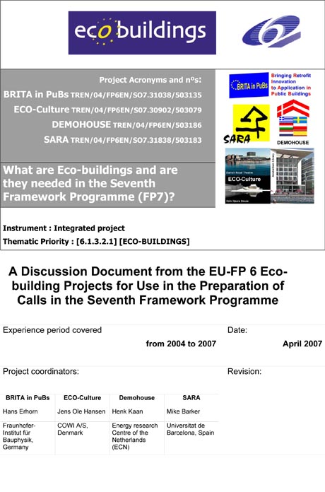 "A Discussion Document from the EU-FP 6 Eco-Buildings Projects for Use in the Preparation of Calls in the Seventh Framework Programme."